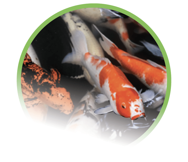 Crystal Blue pond cleaners, barley straw, and Zeigler fish food